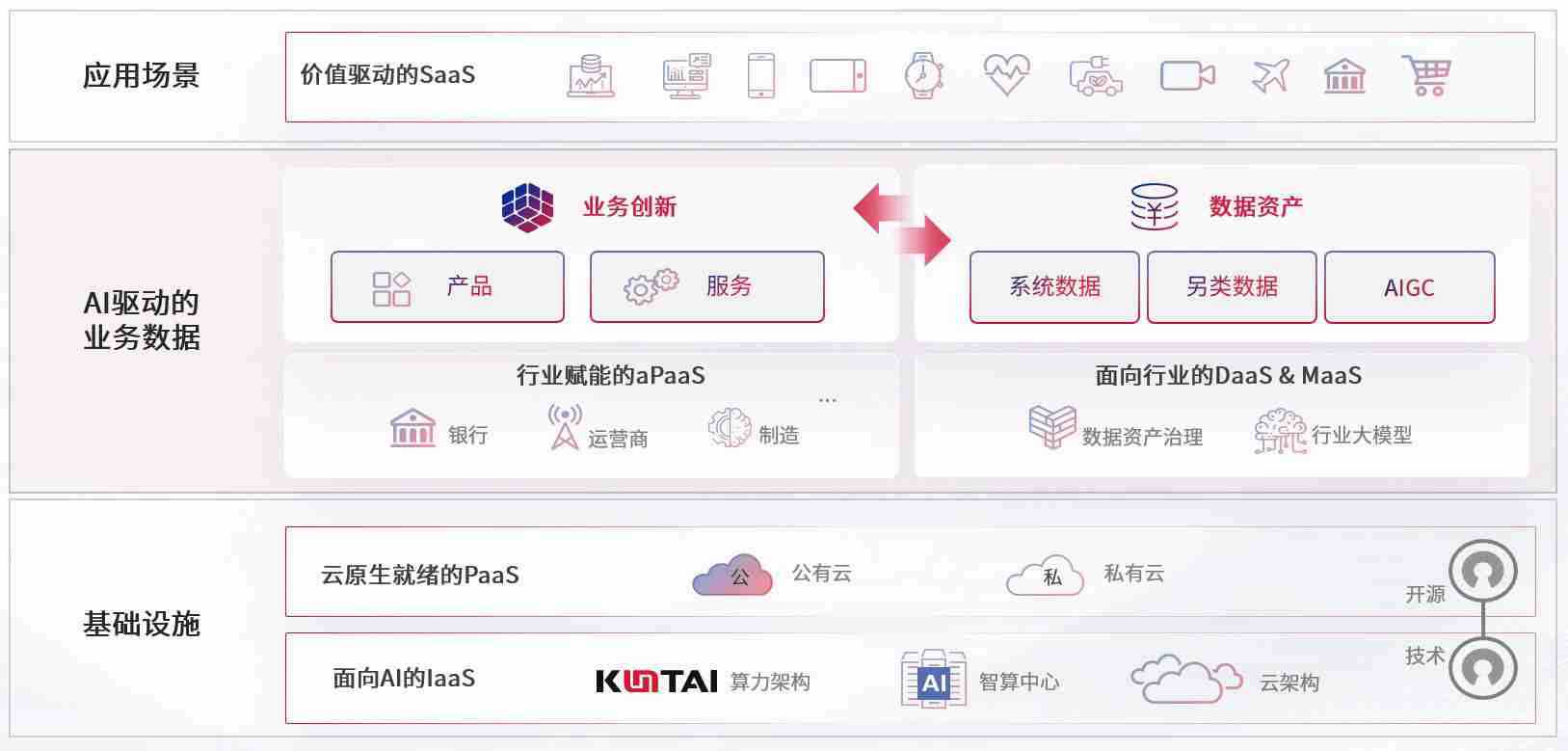 数字时代,,围绕企业数字化转型的关键要素,,星空娱乐数码开创性的提出数云融合战略和技术体系框架,,着力在云原生、、数字原生、、、、AI原生和信创产业上架构产品和服务能力,,,,为处在不同数字化转型阶段的快消零售、、汽车、、金融、、医疗、、政企、、、、教育、、运营商等行业客户提供泛在的敏捷IT能力和融合的数据驱动能力,,,,构建跨界融合创新的数字业务场景和新业务模式,,,,助力企业级客户建立面向未来的核心能力和竞争优势,,,全面推动社会的数字化、、智能化转型升级。。