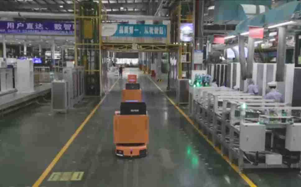 为车载冰箱物流配送打造的智能解决方案,,,,包含产中物流通过潜伏举升AMR搬运至线边,,,,产后成品物流智能仓储,,,,流程包含产中物流智能齐套入库,,,,线边安灯叫料AMR智能配送至线边,,,成品入库、、、、出库,,,,通过无人堆高车机器人,,,,智能仓储管理替代人工作业管理,,实现更高存储、、、、更高效率、、更具柔性化的解决方案。。